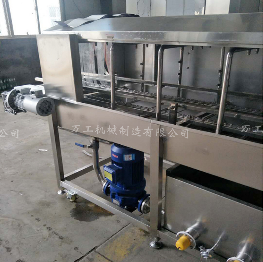 1、洗筐機主要由輸入、預洗、主清洗、漂洗、及輸出部分組成。使用标準組合式清洗系統非常靈活,可根據用戶的特殊要求進行組合;洗筐機合理的水路設計,達到節水高效,耗水量僅爲500L/小時;預洗水箱、主清洗水箱設有蒸汽加熱及溫控裝置,以便調節水溫達到清洗效果;輸送裝置採(cǎi)用變(biàn)頻調速,輸送鏈速0.7-7米/分可調整,以滿足不同條件下的清洗要求;
