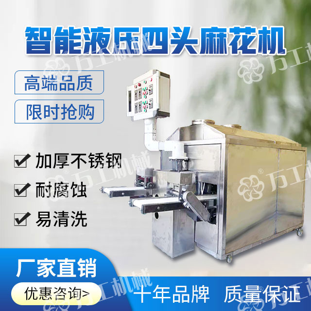 智能液壓四頭麻花機,操作簡單,採(cǎi)用三調速結構,生産時将和好的面團放入機器内,在靜壓推面器的作用下經模具出條後,通過模具的旋轉自動上勁挽花,再由延時切段機自由控制麻花的長短,産品花形美觀漂亮,高效節能、安全衛生、無噪音無污染,極大的提供高瞭(le)生産效率和産品質量。